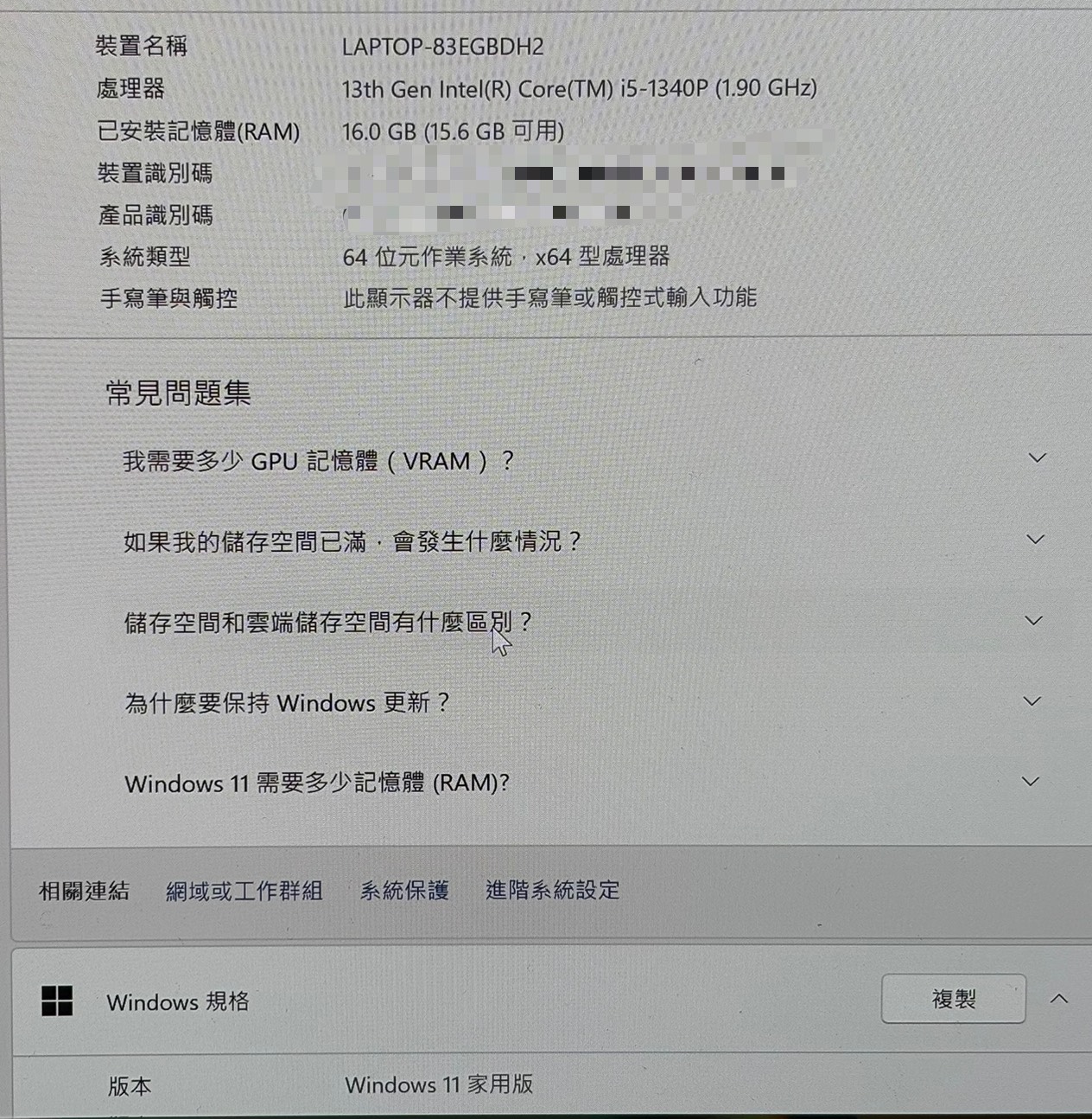 處理器:Intel(R) Core™ i5-1340P Processor 1.9 GHz
